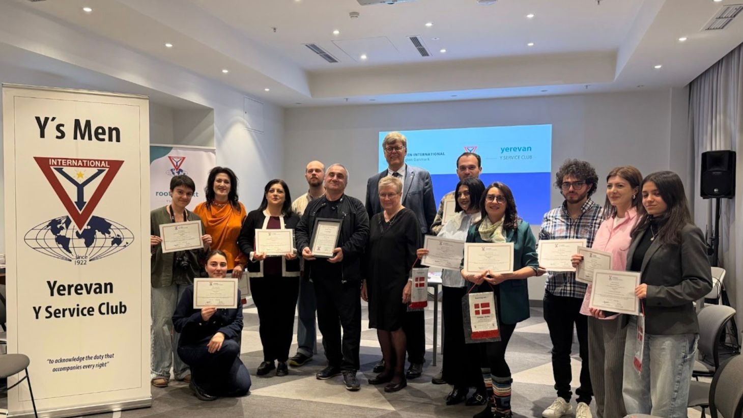 On March 28, 2026 the official chartering ceremony of Yerevan Y Service Club was held in Armenia involving twelve newly joined members along with the Regional Director of Y’s Men Denmark Kristian Helms and the President of Y’s Men Aulum Denmark Birgit K. Jakobsen.